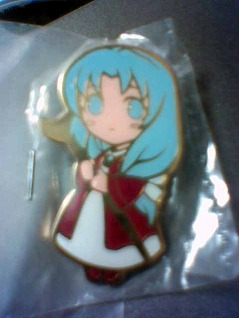 髪のリボンは青じゃなくて白にしてしまっているようですが(指定すんの忘れたのか、それともピンズ一個に対して指定する色が限られているのか)、表情の可愛さでそんなもん許してしまう。なんかちょっとお澄まししているようにも、微笑を浮かべているようにも見えるお顔が可愛いんですもう。デフォルメデザイン誰だろうか…。スノーたまの控えめながらもちょっと凛々しくて、けど親しみや優しさや甘さを感じさせる性格が滲み出るようなデザインに感謝。いやまあ、シンプルなデザインだからこそ、脳内補強でそういうものを見出してしまうんだろうけどさ。あああかわいい…。